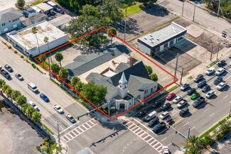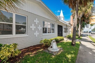 An enchanting landmark property in the heart of vibrant Downtown Melbourne. On just over 1/2 acre, 9000 sq ft of historic character, stained glass windows, hardwood floors, soaring wood ceilings, exposed beams. In addition to the historic structure and blending charm with functionality there is a modern event hall, commercial kitchen,5 bathrooms, offices and several flexible spaces throughout. Zoned C-2. Current use is event venue/church but this property supports a variety of uses: restaurant, music venue, retail, offices, future redevelopment potential. Exceptional visibility at the Northwest corner of US192 and US1 with a 2024 est. traffic count of 37,750 vehicles daily. In addition to the private parking on the property, there is a City of Melbourne 1 acre parking lot less than 300 feet away (approx. 120 to 140 cars) with direct sidewalk access and separate alleyway access to the building. History, presence and potential in one of Melbourne's most thriving districts.