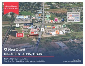 Positioned at the high-traffic intersection of Highway 6 and Highway 35, this ±0.84-acre tract in Alvin, Texas offers a prime opportunity for retailers or service providers seeking a strategic location in a rapidly growing market. With approximately 186 feet of frontage on Highway 6 and visibility to over 47,000 vehicles per day combined, the site is ideally suited for a ground lease or build-to-suit development.