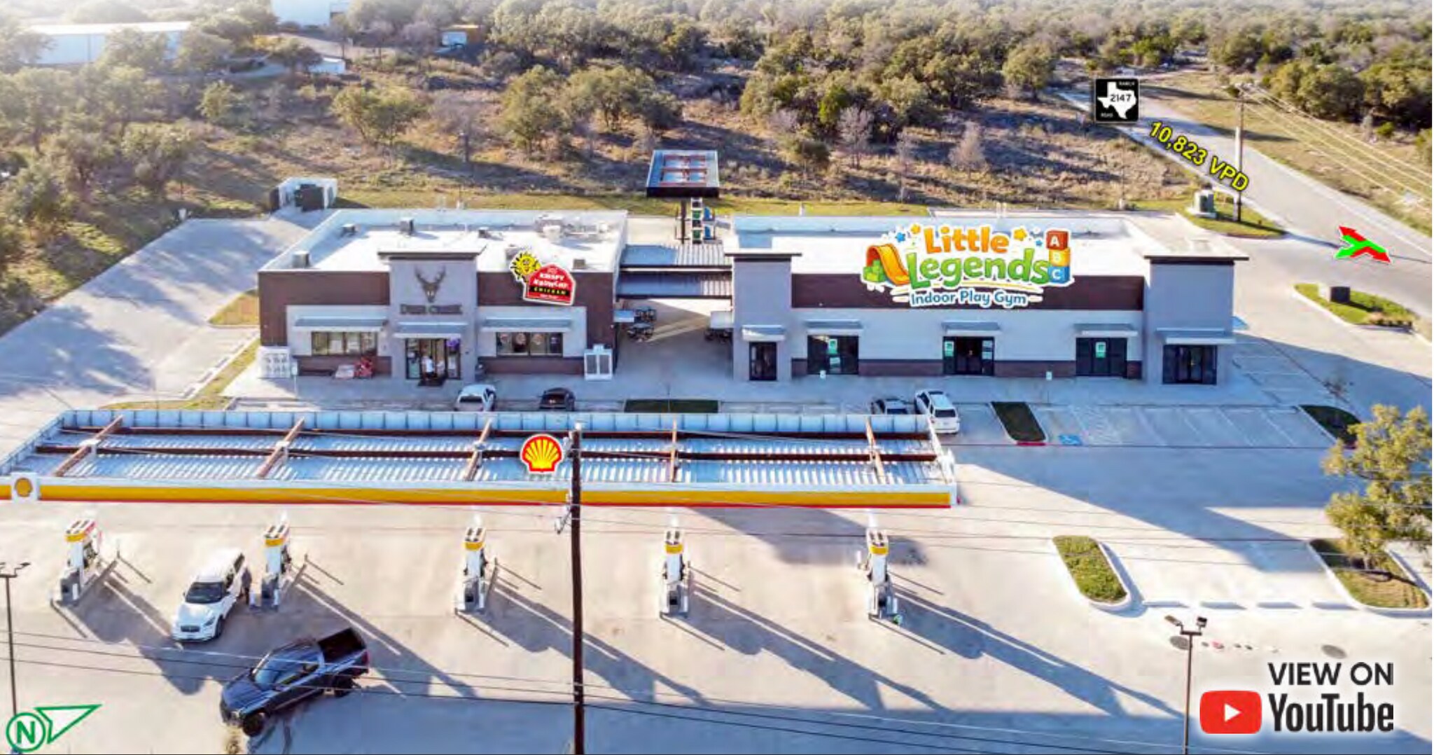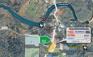 6,000 SF retail, restaurant and medical development for lease located at a hard corner off of Hwy 281 in the growing Marble Falls area west of Austin.