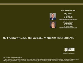 Located in the heart of Southlake, 185 S Kimball offers a well-positioned and thoughtfully designed office space ideal for businesses seeking convenience, visibility, and functionality. The property features modern finishes, tall ceilings, private offices, and ample natural light throughout.