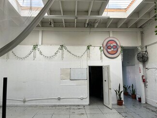 The single story unit benefits from 11-14 foot clearance in a generous open warehouse design, with several skylights, a small kitchen and two 1/2 bathrooms and one 3/4 bathroom.