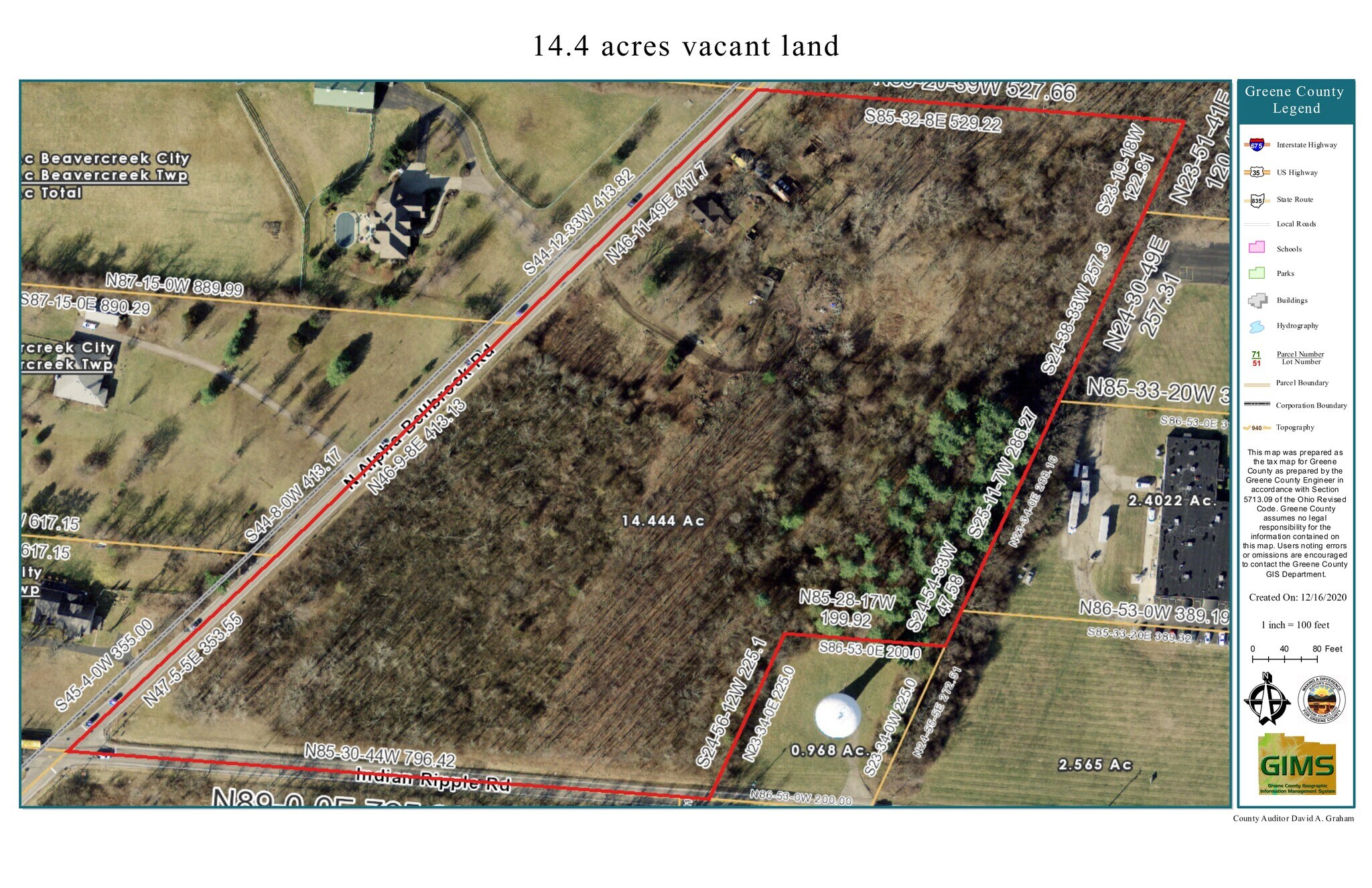 The Cummins Property, located at 70 N Alpha-Bellbrook Road Beavercreek, OH 45434 in Beavercreek Township in Greene County. This property is 14.44 acres of mostly undeveloped land, with several unusable structures on the premises. It is zoned Commercial - Planned Unit Development (C-PUD). The Zinck Property (Walnut Farm), located at 186 N Alpha-Bellbrook Road Beavercreek, OH 45434, in Beavercreek Township in Greene County. This property is 28.73 acres of undeveloped land, zoned A-1 Agriculture. Conveniently located adjacent to the north of the Cummins Property, there is possibility for a joint sale.