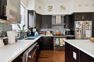 Incredible multi-unit in the heart of Fishtown! This 3 story building, zoned CMX2, has so much to offer!! The 1st floor of the building is currently set up as a professional office with full bathroom, finished basement and fenced in backyard. The residential unit upstairs features 3 Bedroom, 3 Bath with 2 balconies and a deck accessible only from the master suite. Enter into the amazing, open living space with 10ft ceilings, large windows to maximize light and beautiful hardwood floors. Gourmet kitchen featuring espresso maple cabinets and White, Quartz countertops, island with stainless steel appliances. Just off the kitchen, you can exit the sliding doors to enjoy a 5x10 low maintenance composite deck. Spacious living room also has a balcony for outdoor relaxing. Next level has 2 bedrooms, full bath and laundry closet with front loading washer and dryer. Each bedroom has ample closet space. Final Level is home to the primary suite which can be entered through french doors from the top of the open staircase. Spa like bathroom with large soaking tub and shower stall with multi shower heads, Walk in closet, Linen closet and 14x7 deck off bedroom. 3-Zoned high efficiency HVAC systems for comfort heating and cooling.