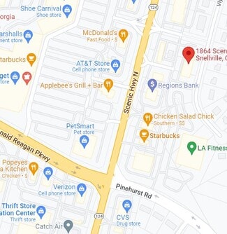 Scenic Hwy next LA Fitness. Adjacent properties include LA Fitness, Chicken Salad Chick Walgreen's , Starbucks, Wendy's, Regions Bank, ATT, Jimmy Johns,