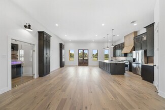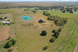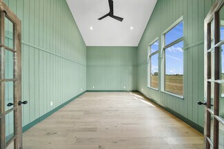 An incomparable UNRESTRICTED retreat! This elegant custom-built estate is designed for entertaining with great open spaces and stunning views. Property features over 500 beautiful live oak and pecan trees, stocked pond, bridge with gazebo over pond, and double entry gates. WOW your guests with the elegant entry offering 26-foot custom tongue and groove knotty pine ceilings. Create gourmet cuisines in the chef's kitchen with an oversize island, gas range, under/over cabinet lighting, and double dishwashers. Entertain your guests in the large media room with loft. The wine grotto has plenty of room to store a variety of wines in the climate-controlled room. Secluded primary suite features massive walk-in closet, separate soaking tub, and shower. Home is prewired for alarm, cameras, home automation and sound system including preinstalled speakers. Enjoy the stunning views from your front porch or the back balcony. Book a private showing today to see all this property has to offer.