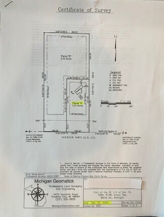 Located on US-31 just West of Reynolds Rd., on the Right. 150 Ft. of Rd Frontage on 1.21 Acres. Approx. 1,744 Sq. Ft. Steel Framed Metal Building w/14'x15' office. 3-Phase Electric, W/200 AMP Service. 1-Bathroom w/private septic & well. Approx. Year Built-1994. 1-Overhead Garage Door. Natural Gas Hook-Up Avail on street. Large Parking Area. Zoned Commercial. Town Approval needed to continue Light Industrial use. Benzie County, Inland Township. Possession 60 days after closing. Available by Appointment. Contact 231-620-7752.