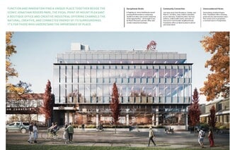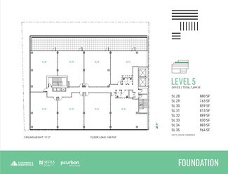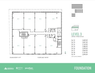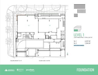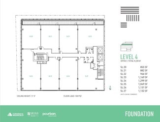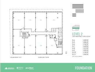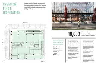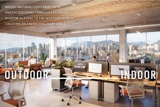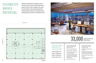 Expansive and highly efficient office floorplates offer exceptional flexibility, easily divided to suit a variety of layouts and business needs, with demising options ranging from 750 SF to multiple full floors across approximately 33,000 square feet of total office space. Spanning four levels of premium, unencumbered general office use, the spaces are defined by thoughtful, high-quality design that sets a professional and inspiring tone throughout. Upper-level units open onto private balconies on levels four through six, complemented by landscaped planters that visually extend the adjacent park upward into the building. Interiors feature exposed ceilings up to 11'5", unobtrusive column spacing for maximum efficiency, and abundant natural light. A professionally designed lobby and refined common areas—including end-of-trip facilities on the mezzanine level—enhance the daily experience, while individually enclosed washrooms with sophisticated finishes are conveniently located on every floor. The building is future-ready, offering a robust communications backbone, 208/120V three-phase electrical service, designated mechanical shafts for venting, energy-efficient mechanical systems, and one parking stall per 1,200 SF with EV charging capability, creating a modern workplace designed to perform today and adapt for tomorrow.