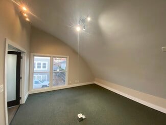 Updated office space with a unique curved vaulted ceiling in sight of the Cobb County courthouse and the Marietta square. It features three offices, reception area, large conference room, open work area, kitchenette and private restroom.  Convenient to professional offices and services, dining, retail and events. 2.22/1000 parking ratio, parking lots and street parking available.  Ideal for professional services and other office uses. Located in the central business zoning district.