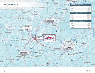 SRS National Net Lease is pleased to offer the opportunity to acquire the fee simple interest (land & building ownership) in an absolute NNN leased, guaranteed by Soar QSR (191+ unit operator) Sonic investment property located in Boaz, Alabama. Soar QSR is the 3rd largest Sonic franchisee and will sign a brand new, 20-year lease at the close of escrow (sale-leaseback) with 4 (5-year) options to extend, demonstrating their commitment to the site. The lease features 10% rental increases every 5 years throughout the initial term and at the beginning of each option period, steadily growing NOI and hedging against inflation. The lease is absolute NNN with zero landlord responsibilities making it an ideal, management free investment opportunity for a passive investor.
