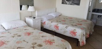 10 Guest Rooms – Clean, comfortable, and identically furnished for efficiency. Each features two double beds, mini fridge, microwave, dresser, mirrors, showers (no tubs), and seasonal A/C.