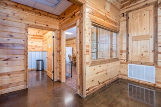 Premier Retail / Showroom Opportunity | 7,188 ± SF on 1.01 AC — Hugo, OK Stone accents, cedar columns, and a wall of floor-to-ceiling glass give this 7,188 ± SF building standout curb appeal along one of Hugo’s busiest routes—just seconds from Walmart, groceries, restaurants, and shopping. Expansive, column-free showroom with stained, mirror-finish concrete floors, exposed steel trusses, LED track lighting, and cedar plank walls create an authentic modern-rustic look. Custom reception / checkout counter positioned for smooth customer flow, flanked by dual dressing rooms ready for apparel retail. Warehouse / storage wing at the rear with wide service doors and clear-span height for pallet racking, inventory, or light manufacturing. Fully decked, spray-foam-insulated attic accessed by stairwell—ideal for overflow storage or office use. Includes a public restroom and a private restroom with shower. Employee breakroom with appliances, cabinetry, and a discreet “peek-in” window to monitor the floor. 4800 sq ft of retail, 1200 sq foot storage space, 400 sq ft lounge/restroom area, and approximate. 7200 sq ft unfinished second floor. Turn-key condition—move-in ready to lease, launch your flagship, or repurpose as an event venue, restaurant, call center, medical/office hybrid, retail store, or more. Energy-efficient spray-foam insulation and slab-on-grade construction help reduce operating costs. Concrete lot and 1.01-acre footprint offer room for parking, displays, or expansion. High-visibility location with direct US-70 access draws local shoppers, regional traffic, and tourists—just five minutes from Walmart Supercenter and Hugo’s main retail corridor. Whether you’re seeking a triple-net investment or an ideal owner-user headquarters, this property delivers top-tier visibility, construction, and flexibility. Schedule your private tour today! (AGENTS BE SURE TO CALL LISTING AGENT PRIOR TO SHOWING, there is an alarm system)
