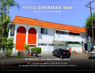 Marcus & Millichap is pleased to announce the opportunity to purchase 19103 Sherman Way, a 10-unit multifamily property that contains three additional non-conforming units in Reseda, CA. Situated at the highly visible corner of Sherman Way and Vanalden Avenue, the property allows tenants convenient access to the revitalized Warner Center and Woodland Hills neighborhoods, including several new and proposed development projects. The new Topanga Village and recently opened Topanga Social are a short drive southwest of the building. The entitled Promenade 2035 mixed-use campus, which could span 35 acres and may include a new sports and entertainment complex for the Los Angeles Rams to use as a practice facility, in addition to 280,000 square feet of restaurant and retail offerings, hotels, offices, and residential units, could be developed nearby via a $1.5 billion infusion of capital into the local area.
