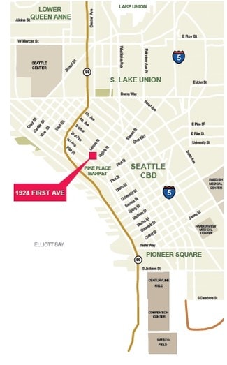• Key location on 1st Avenue across from the Pike Place Market, next to Design Within Reach, Baby & Co., and Jackstraw