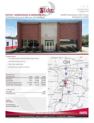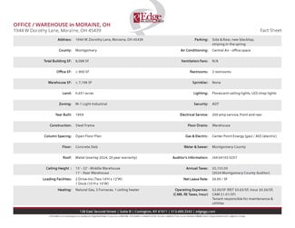 -Centrally located in Moraine/Kettering corridor -Convenient access to I-75 -Clear span warehouse -Multiple drive-in doors and dock Net Lease Rate = $6.95 / SF