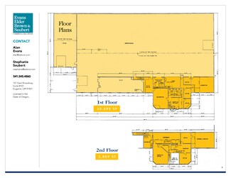 • The second floor includes three offices, one restroom, open work areas, conference room with accordion wall and a storage/archive area.