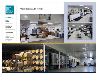BUILDING | The building consists of approximately 23,554 square feet located on 1.42 acres of M (industrial) zoned land. It is connected to the public water/sewer system in Cottage Grove and is fully sprinkled. The ceiling height at its peak is 20’ and a new membrane roof was installed in 2024. The property has been well maintained and is currently set up as a fully operational winery/brewery including equipment. The building is in excellent condition and has onsite parking for approximately 33 cars.