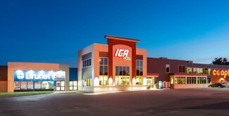 Located near secondary front-facing entrance, with parking lot and interior hallway access. Ample parking available on site. Located next to major tenants and commercial amenities. Located near by public transportation. Major Tenants are: IGA, Brunet, Bonisoir, Hart, and SAQ.