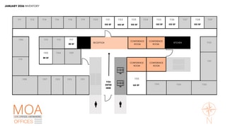 • 35 Private Offices with desks, chairs and executive chair, ranging from 88 SF to 240 SF