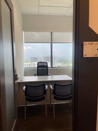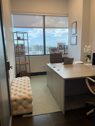 Beautiful building in the heart of Aventura, next to Brightline train station and with Aventura Mall Across the street. This beautiful, modern workspace provides flexible contracts and has fully furnished serviced offices. Offering 35 Privates Offices with desks, chairs and executive chair. From 88 SF to 240 SF spaces available. Amenities include high-speed wireless internet and Fully equipped kitchen. Access to conference rooms. Front desk service by professional and friendly team. Free Onsite Parking. "One month free" offer is still available for leases longer than 7months.