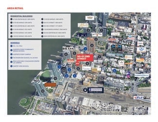• Corner retail space up to 7,459 SF (divisible) available at the base of Gantry Park Landing, a 199-unit mixed use building