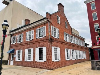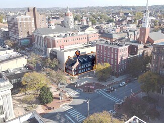 Prime first-floor office space directly on downtown York’s Continental Square in the historic Golden Swan Tavern building. Originally built in 1807, this historic landmark was converted to office space in the 1970’s and features a large reception area, six private offices, a conference room, ample open bullpen space, a kitchenette/break area, and two private restrooms. The private offices feature glass partition walls allowing for maximum natural light to pass through form the windows on looking out to the Continental Square.