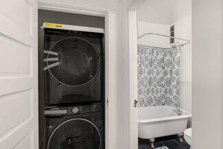 This top-floor studio is located in the historic Carlton Court building and offers vintage elegance blended with modern touches. The unit features a gas fireplace, restored wood floors, and a classic clawfoot tub in the bathroom. The kitchen includes tiled countertops, a freestanding gas range, and a full package of appliances. Washer and dryer hookups are available in-unit. With a Walk Score of 100 and secure building access, this home is ideal for those seeking convenience and charm. Just moments from Downtown, the Pearl District, NW 23rd, and Providence Park. Virtual tour available.