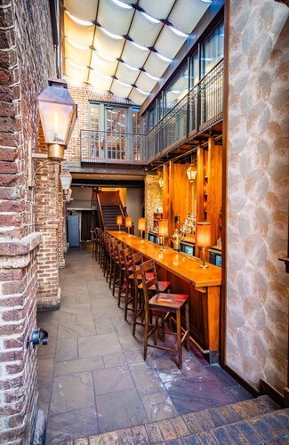 McCrady’s Tavern was constructed throughout the late 1700’s and is considered one of Charleston’s oldest and best preserved Revolutionary era taverns . The building has retained many of its original architectural elements, including the first floor brick arcade and kitchen hearths, as well as the second floor Long Room, historically used for significant political gatherings including a dinner for President George Washington in 1791 and theatre performances. The Long Room also retains its original eighteenth century wainscoting, cornicework, stage floor and baseboards. McCrady’s Tavern underwent a significant restoration in the 1980s to both modernize the building without jeopardizing its esteemed historic character and to preserve the existing eighteenth century elements. The building was listed to the National Register of Historic Places as an “increasingly rare architectural and functional structure” and for its associations with significant political events in Revolutionary era Charleston.