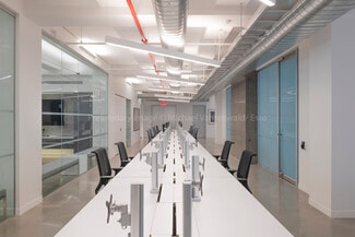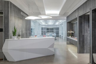Opportunity to acquire this premium office space which offers a sophisticated environment designed for productivity and client engagement. The property features an executive suite with private bath and shower, custom woodwork, and a dedicated meeting area for eight. Two expansive boardrooms, each seating 16, are equipped with advanced video conferencing technology, complemented by multiple private offices and 12 smaller meeting rooms for flexible collaboration. A high-end pantry with custom cabinetry, seating for 14, and a town hall area enhances employee experience, while workstations accommodate over 100 staff comfortably. Additional amenities include private bathrooms off reception, separate men’s and ladies’ restrooms with upscale finishes, staff lockers, and ample storage throughout. This offering combines premium design, advanced technology, and thoughtful layout, making it an ideal headquarters solution in a prime location.