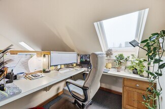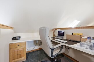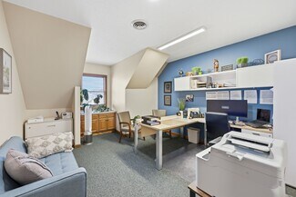 Office condominium available for purchase within the Mapletree Square complex in Ludlow, MA. This second-floor unit offers approximately 2,000 square feet of functional space designed for professional use. The layout features a welcoming reception area, multiple private offices, a kitchenette, and two restrooms. Built-in workstations provide an efficient setup for collaborative teams, while skylights and ample windows deliver natural light throughout the space.