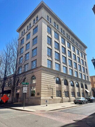Office space is available for lease on the 7th floor of a beautiful historic building in downtown Johnson City. The suite is accessible by elevator or stairs, and includes 5 private offices, open work area, 2 break areas, large conference room and 2 restrooms. The building has a security system, with keyless entry to the space. The site is proximal to 3 public parking lots, and is approx. 0.3 miles from I-26, exit 23.