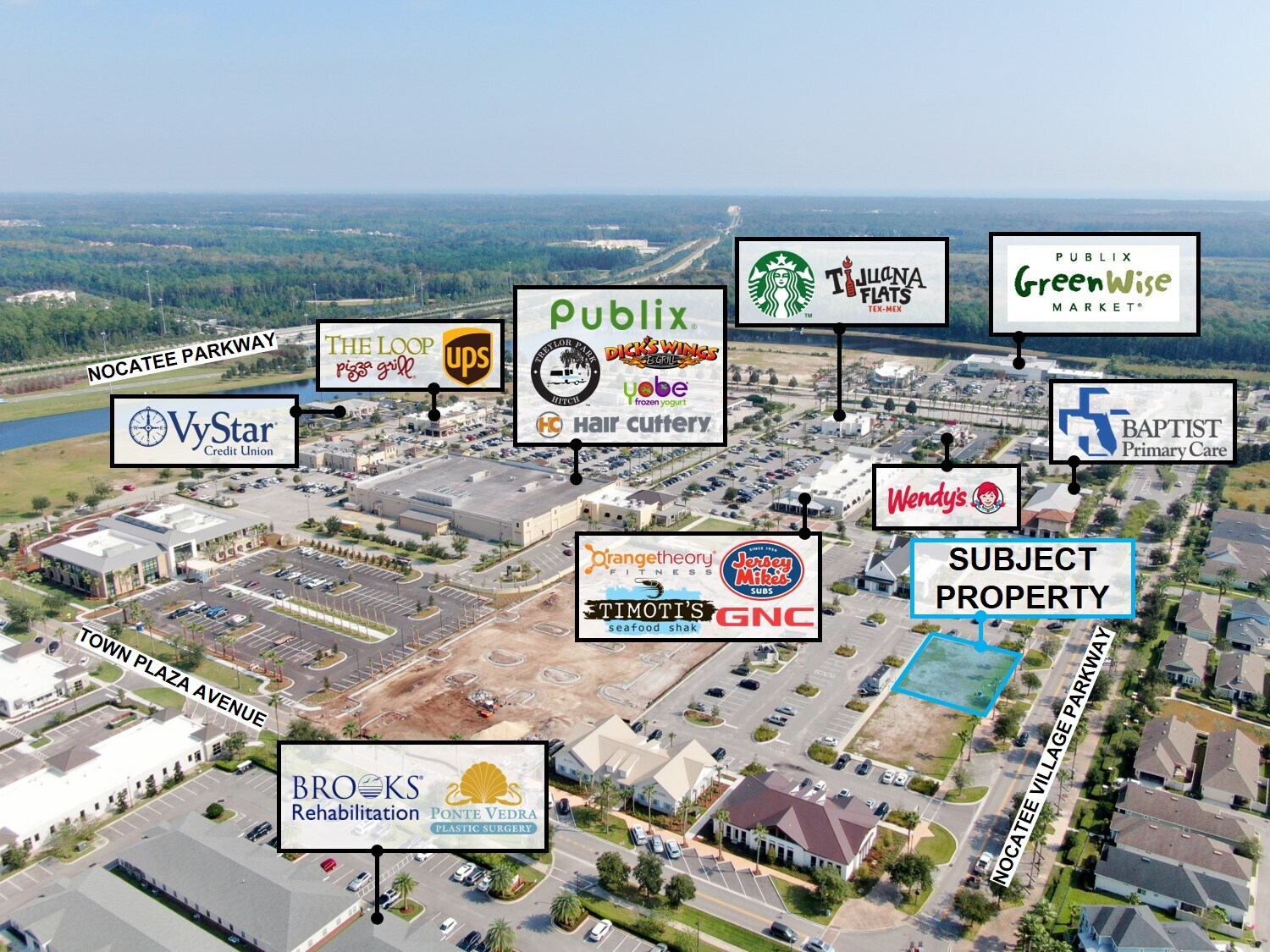 Prime Realty is pleased to exclusively represent this 4,500 SF pad-ready site for sale at the Nocatee Town Center, in the heart of Nocatee, a new housing and commercial development. Nocatee is one of the best-selling master-planned communities in America, and the number one place to call home in the state of Florida. Surrounded by national retailers and located adjacent to a Publix-anchored shopping center, this build-ready land has ample parking and access to over 2,000 residents in a 1-mile radius
