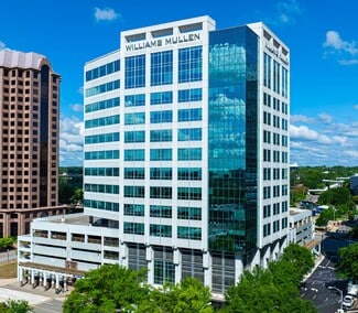 The Williams Mullen Center is a 207,000 SF high-rise office building in a premier location on the southeastern edge of Richmond's Central Business District at the corner of 10th and Canal Streets. The center is home to one of the region's most prominent law firms and also includes several other professional corporations. The available suites both have astonishing views of the James River and downtown. The property is an easy walk to hotels, shops, residential buildings, restaurants, the James River Park System and Canal Walk.