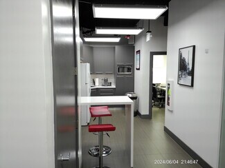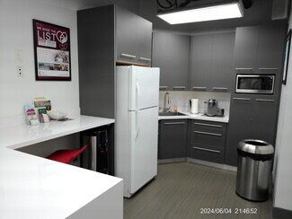 In addition to its office and meeting areas, the suite includes a dedicated break room designed to support day-to-day operations and employee comfort. This space is equipped with an in-unit sink and refrigerator, along with a table and seating area, creating a convenient and functional environment for staff use. The inclusion of a break area within the suite enhances overall usability and contributes to a more complete workplace setting.