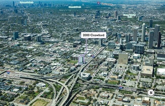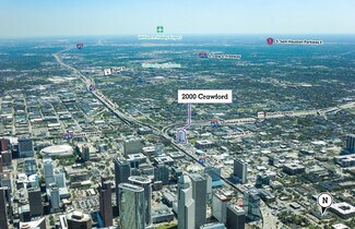 Towering over Interstate 45 and Highway 59 with an unmistakable exterior mural, 2000 Crawford makes a vibrant statement in Midtown. This location provides uncongested access while still being proximate to CBD professional hubs. Destinations like Daikin Park, Discovery Green, Toyota Center, George R. Brown Convention Center, and the Downtown YMCA are nearby. Tenants can also walk to several restaurants, shopping hubs, hotels, and banks.