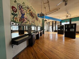 Logan Square Corner Store front.. Turn key beauty salon for 18yrs on very buzy corner. The space has hardwood floors high ceilings full basement for storage parking available.