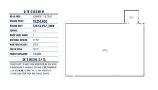Located 2.3 miles from Interstate 49, this 8,600 SF warehouse is available for sale at $1,250,000 or lease at $10.50/SF NNN. The I-1 zoned property features one dock door and 3-phase power.