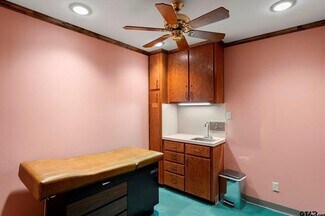 Prime Medical Office Near Titus Regional Hospital! Exceptional opportunity to own a well-designed medical office just steps from Titus Regional Hospital. The main level features three exam rooms, each with handwashing sinks and built-in counters, along with a dedicated ultrasound room. The spacious waiting area includes three reception workstations, and there is a convenient hallway workstation for staff and a lab workstation with sink. A private physician’s office is located downstairs with exterior entrance. Jack-and-Jill restrooms between the exam rooms and a separate restroom for patients. Upstairs offers bonus space ideal for a lounge, study, or additional workspace, complete with a full bathroom. This property includes one-fourth ownership in the shared parking lot and provides excellent accessibility for staff and patients. With its functional layout and prime location near Titus Regional Hospital, this medical office is move-in ready and perfectly suited for healthcare professionals. Call today for your private showing!