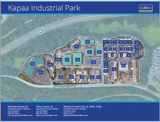 Comprised of more than 35 buildings with over 350,000 square feet of office and warehouse improvements, and 25 acres of industrial yard space, Kapaa Industrial Park presents a very unique opportunity to house and grow your business all in one location. Kapaa Industrial Park’s mixture of first class office space, high cube warehouse space, graveled and paved yard spaces, and affordable Quonset huts allows businesses of all sizes to thrive.