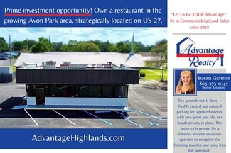 Prime investment opportunity! Own a restaurant in the growing Avon Park area, strategically located on US 27. The groundwork is done—freshly coated and painted parking lot, updated interior with new paint and tile, and hoods already in place. This property is primed for a visionary investor or owner-operator to complete the finishing touches and bring it to full potential. Rare chance to secure a highway-front location near the heart of Avon Park’s bustling crossroads! (AADT: 38,500)