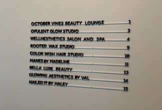 Fully renovated facility with 15 luxury salon suites – perfect for a professional ready to grow their own brand in a modern, private suite.? Suites available to accommodate individuals or dual occupants! Suites start at $1500 per month! Great for hair stylist, lash artist, massage therapist, skin specialist, spray tan technician, waxing specialist, health coach, men's grooming, nail technician, etc.? Hair stylist not ready to commit to a whole suite…rent one of two chairs in a bright, front-facing space & keep things flexible.? ($750/chair per month).?