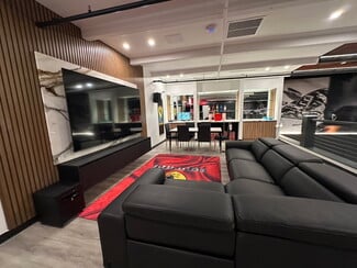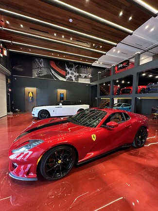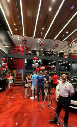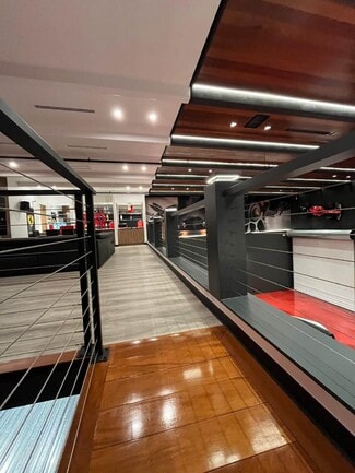 No expense spared buildout by Exotic Auto Vault of a brand new warehouse at Auto Vault Ft Lauderdale . Brazilian Teak ( Kamura) ceiling , state of the art LED lighting , 2 air conditioning systems , marble shower / bathroom , custom metallic wall panels , AI integrated surveillance system, Bose surround sound audio with 100 “ LED TV , High speed internet with multiple WI-FI access points . Mezzanine includes bar cooler , wine refrigerator, cigar smoke eater ( exhaust) , Quartz counter tops and custom cabinetry with glass shelving for spirits collection , Custom metal with wood floating staircase, metallic level epoxy floor finish, Custom Benpak car lifts , Two 12ft electric hurricane garage doors The warehouse is a Total of 2700 SF which stores 15 cars .
