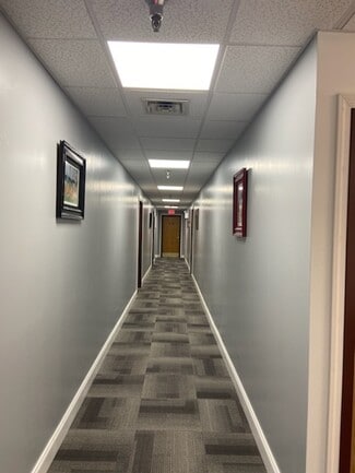 This second story availability is comprised of suites #201 and #204, and offers five partitioned rooms, two common/lobby areas, and a storage closet. Private offices are amply lit by large windows, and each room features modern finishes, carpeted flooring, and drop ceilings with recessed lighting. This space is conveniently located directly across the hall from common area restrooms, the elevator stall, and stairway.