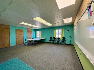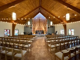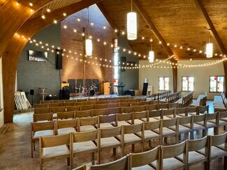 Currently, the lot features an approximately 6,000 sq. ft. church building with recent upgrades, including two new HVAC units (within the last five years), a new metal steeple roof, updated electrical, and a durable Durolast roof on the flat section. The property also boasts a well-maintained combination asphalt and gravel parking lot with 115+ spaces.
