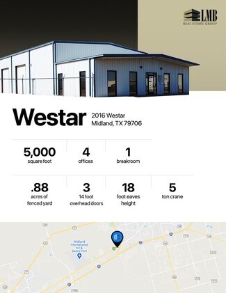 Located just west of Loop 250 off Hwy 80 Easy access to Interstate 20, Loop 250 and Hwy 80. Minutes from Downtown Midland or Midland International Airport.