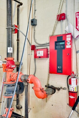 Sprinklered with mezzanine level exhaust system for painting below.