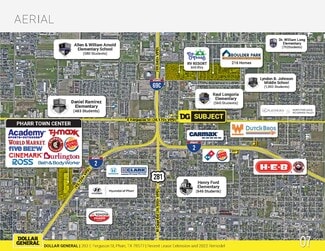 Recently renovated in 2022—including upgrades to the exterior, signage, parking lot, roof, and HVAC—the store reflects the tenant’s long-term commitment to the location. The lease includes three (3) five-year renewal options with 10% rental increases at each period, providing a built-in inflation hedge. Positioned just off Highway 281, the site benefits from excellent visibility and access, with over 28,170 vehicles per day on E Ferguson Street. Additionally, the property is only 12 miles from the U.S.-Mexico border and the high-traffic Pharr–Reynosa International Bridge, which saw over 1.2 million crossings in 2023. With strong five-mile demographics of 227,220 residents and an average household income of $66,106, this Dollar General stands as a compelling investment at a low entry price, anchored by essential retail demand and economic durability.