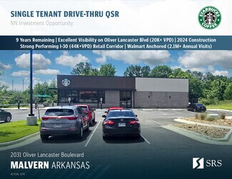 SRS Real Estate Partners, LLC is pleased to offer the opportunity to acquire the fee simple interest (land & building ownership) in a new construction, corporate guaranteed (NASDAQ: SBUX), investment grade (S&P: BBB+), Starbucks investment property located in Malvern, Arkansas. The tenant, Starbucks Corp., has approximately 9 years remaining on its lease with 4 (5-year) options to extend, demonstrating their commitment to the site. The lease features 7.5% rental increases every 5 years throughout the initial term and at the beginning of each option period, growing NOI and hedging against inflation. The lease is NN with limited landlord responsibilities making it an ideal, low-management investment opportunity for a passive investor. Starbucks is among the most recognizable brands in the world, with over 40,000 locations globally, serving as a best-in-class QSR brand known for strong customer loyalty and a broad market presence.