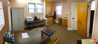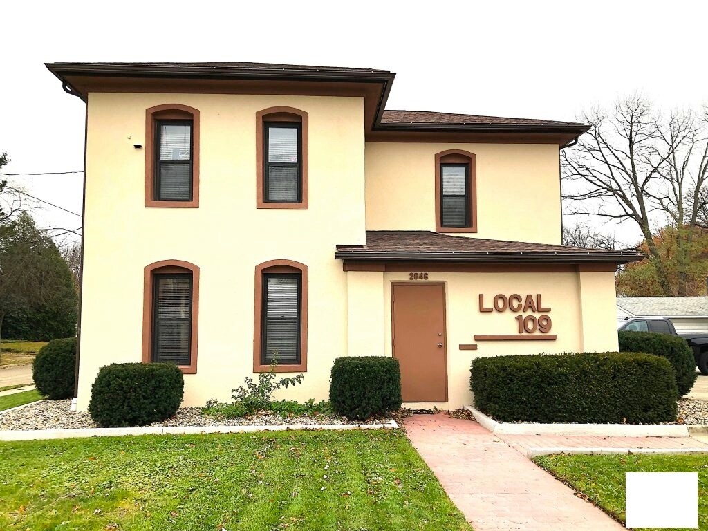 Office building for lease in Akron, OH. Until recently this property served as the meeting hall for the Local 109 Plasterer and Cementer’s Union. All updates were completed by union contractors. All concrete parking lot has been meticulously maintained and drain lines to street have been snaked. Entire building was painted and pressure washed last year.  Interior paint 3 years old. Come take a tour!