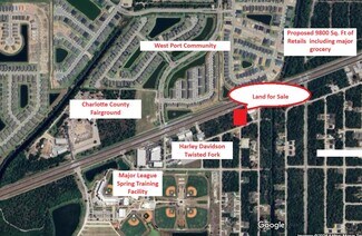 Looking for that great location for your new business or new location for your business...this is the one! Here's a 1.84 acre site which has 320 feet of frontage on El Jobean Road / State Road 776 and 320 feet along Esposito Terrace. This property is perfectly located just a few steps east of Bert's Black Widow Harley Davidson, the Tampa Bay Rays spring training facility and also, the Charlotte County Fairgrounds are very close. Looking for that great location for your new business or new location for your business...this is the one! Here's a 1.84 acre site which has 320 feet of frontage on El Jobean Road / State Road 776 and 320 feet along Esposito Terrace. This property is perfectly located just a few steps east of Bert's Black Widow Harley Davidson, the Tampa Bay Rays spring training facility and also, the Charlotte County Fairgrounds are very close. Property located across the street from West Port Residential Community encompassing 450 Acres with approximately 2,000 single family and multi family homes. This property has multiple ingress/egress options for drive thru and ease of traffic flow. Some leg work (otherwise expense) has been completed with easement releases from the county to make site more buildable. Also, the Environmental/Species report and a survey are attached! There are plans in progress for a new Publix store at the intersection of Flamingo and El Jobean. High traffic volume: Road name: EL JOBEAN RD (website https://tdaappsprod.dot.state.fl.us/fto/) From: N/A To: TOLEDO BLADE BLVD Year: 2023 AADT: 38000 Roadway: 01050000 Cosite: 010045 County: Charlotte Lat/Long: 27.00324, -82.17403Some leg work (otherwise expense) has been completed with easement releases from the county to make site more buildable. Also, the Environmental/Species report and a survey are attached! There are plans in progress for a new Publix store at the intersection of Flamingo and El Jobean. High traffic volume: Road name: EL JOBEAN RD (website https://tdaappsprod.dot.state.fl.us/fto/) From: N/A To: TOLEDO BLADE BLVD Year: 2023 AADT: 38000 Roadway: 01050000 Cosite: 010045 County: Charlotte Lat/Long: 27.00324, -82.17403