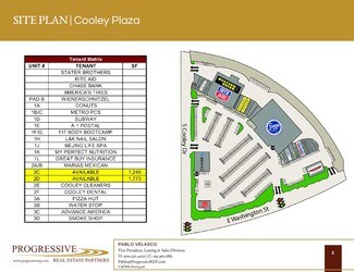 Inline Retail spaces available for lease within Cooley Plaza Shopping Center.